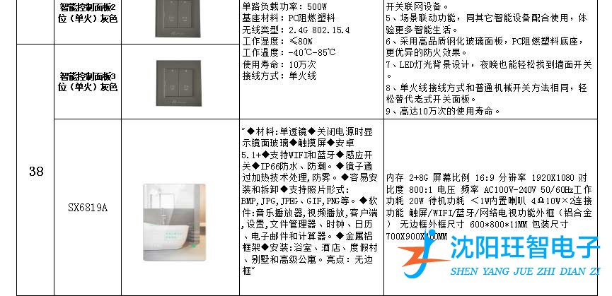 • 产品型号:智能家居